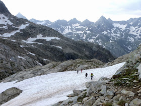 En medio de la foto el grupo de Las Frondiellas, y el delicado nevero que superamos hasta la cumbre del Balaitús.