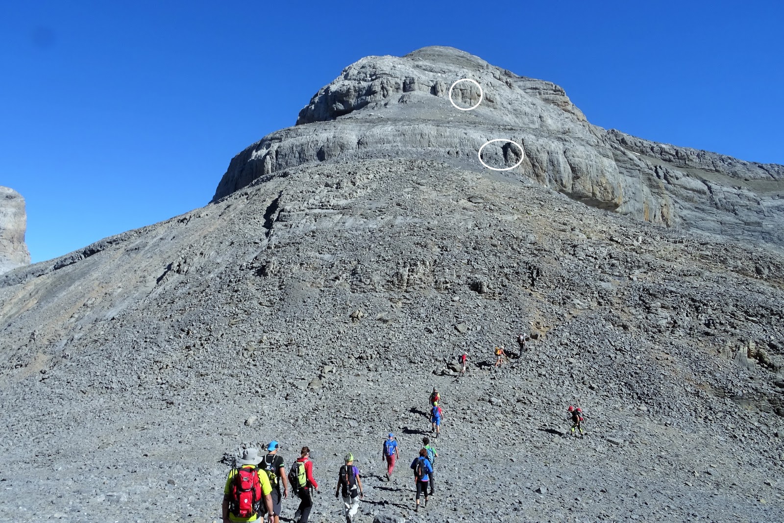 El cuarto resalte nos deja próximos al primer tresmil del día. Hasta ahora las trepadas han sido sencillas, aunque sabemos que las que dan paso a Monte Perdido tienen un punto más.